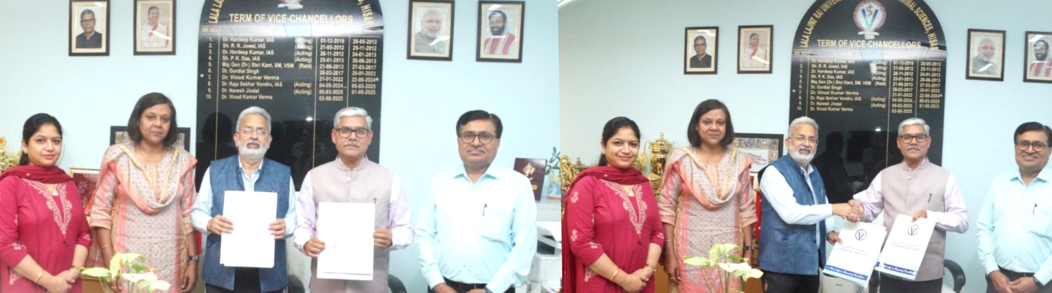 The MoU was signed by Dr. Sonia Sindhu on behalf of LUVAS and Dr Praveen Malik, CEO, on behalf of Agrinnovate India Limited, in the presence of Vice-Chancellor, LUVAS, Prof. (Dr.) Vinod Kumar Verma and other senior officials.